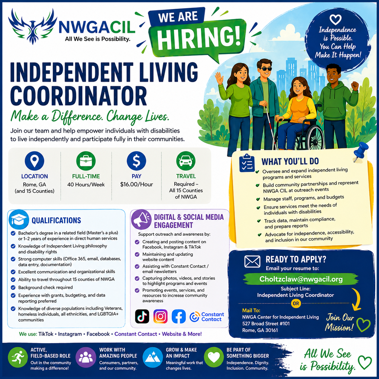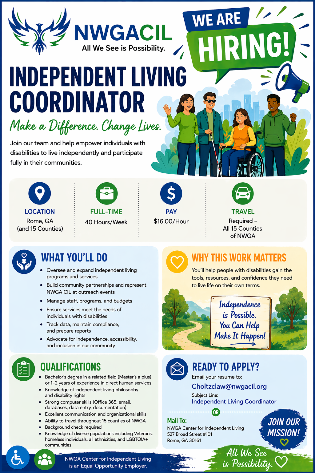 NWGA Center For Independent Living is a non-profit Organization Established on January 3, 2012.